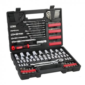 144-Piece Chrome Mechanics Tool Set with Color-Coded Metric & SAE Sockets