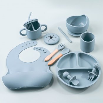 9pcs Baby Silicone Feeding Set with Suction Plates, Bowls, Cups & Bib
