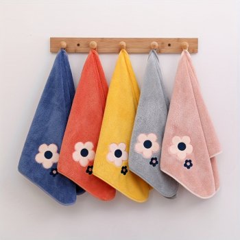Soft Coral Fleece Floral Hand Towels, Quick-Dry, 5-Pack