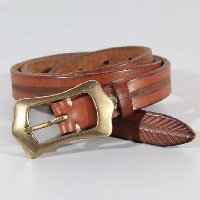 Retro Genuine Leather Women’s Belt with Solid Brass Buckle – Vintage All-Match Style